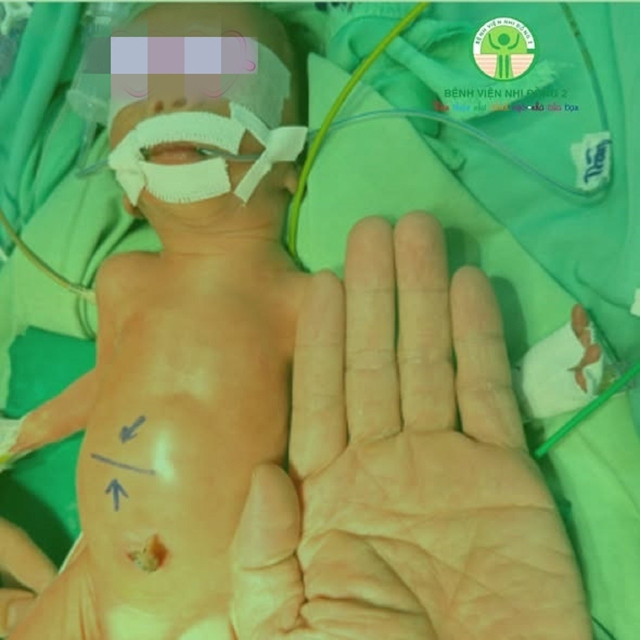 Theo bệnh sử, bệnh nhi là một trong hai trẻ song thai, sinh mổ ở tuổi thai 31 tuần 4 ngày vì suy thai, cân nặng lúc chào đời chỉ 950g. Ngay sau sinh, bé có biểu hiện thở nhanh và được theo dõi tại khoa Sơ sinh của một bệnh viện sản trên địa bàn TP.HCM. Tuy nhiên, hai ngày sau, tình trạng sức khỏe của trẻ diễn tiến xấu nhanh chóng với hàng loạt dấu hiệu cảnh báo nguy hiểm.