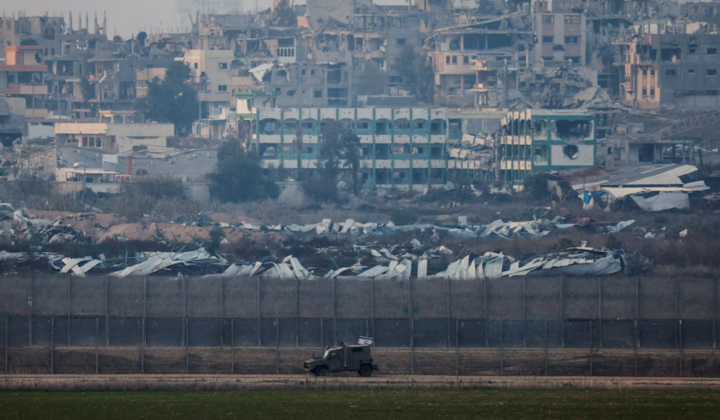 Một chiếc xe quân sự của Israel chạy gần biên giới với Gaza. (Ảnh: Reuters)