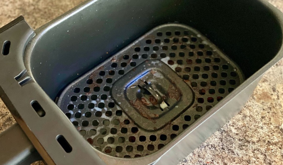 Nồi chiên không dầu của nữ phóng viên Angela chứa đầy cặn bẩn thức ăn và dầu mỡ. (Ảnh: Angela Patrone)
