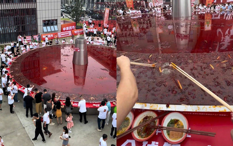 Trong lễ hội lẩu toàn cầu năm 2024 được tổ chức tại Tứ Xuyên, 1000 người đã cùng nhau thưởng thức nồi lẩu khổng lồ này. Được biết, nồi lẩu trong đoạn video có đường kính khoảng 13,8m và nặng tới 10 tấn. Để hoàn thành nồi lẩu khổng lồ này, người ta đã mất tới 8 ngày.
