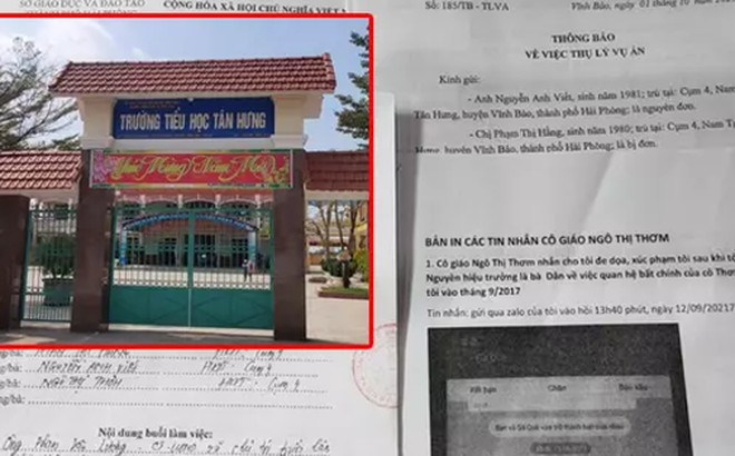 Nữ giáo viên chủ nhiệm một lớp khối 3, trường Tiểu học Tân Hưng (huyện Vĩnh Bảo, Hải Phòng) đã có quan hệ bất chính với Chi hội trưởng Hội phụ huynh học sinh gây dư luận không tốt. Thậm chí, trong thời gian qua lại với anh V., cô T. không chỉ nhắn tin đe dọa chị H., mà còn thúc ép nhân tình về ly hôn.