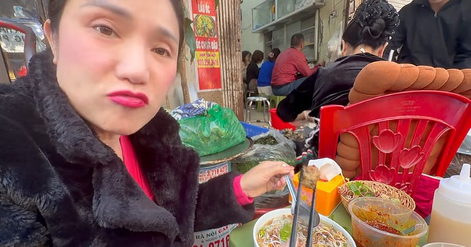 Vừa ăn bún ốc, Cát Tường vừa xuýt xoa khen ngon, ăn cả mắm tôm, rau sống, ớt: "Ngon đã, cay cay tê tê, đậm đà. Chả ốc còn ngon hơn cả con ốc. Tôi ăn hai tô bún hết 130 ngàn, được chủ quán mời trà đá. Bún thơm mùi ốc, nước ngọt thanh".