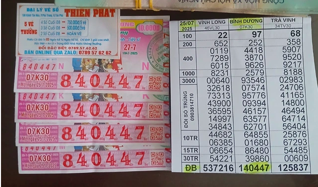 Câu chuyện của người đàn ông 60 tuổi trúng số được phía đại lý vé số Thiên Phát ở phường Tân Phú (TP.HCM) chia sẻ. Theo đó, 4 tờ vé số của người đàn ông trúng giải thuộc đài Bình Dương, có dãy số may mắn là 840447. Trong khi đó, dãy độc đắc của đài này mở thưởng cùng ngày thuộc về dãy số 140447. Vị khách trúng số nhận được 200 triệu đồng (chưa trừ thuế).