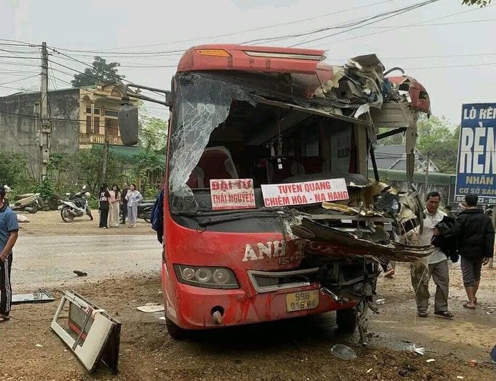 Khi đi tới km157+400 Quốc lộ 2, đường Tuyên Quang - Hà Giang (thuộc thôn Tân Lập, xã Đức Ninh, huyện Hàm Yên, Tuyên Quang), ô tô khách tông mạnh vào xe đầu kéo biển số 22F-005.91 kéo theo sơ mi rơ mooc biển số 89R-01178 do anh L.T.B. (trú Tân Yên, Hàm Yên) cầm lái, đi theo hướng ngược lại.