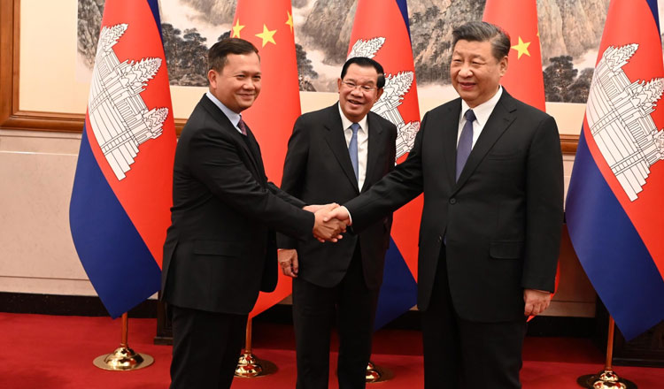 Hai cha con ông Hun Sen gặp Chủ tịch Trung Quốc Tập Cận Bình tại Bắc Kinh vào tháng 2/2023. Ảnh: Khmer Times