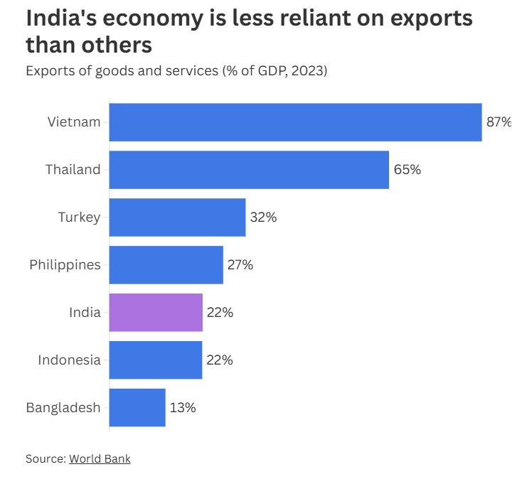 Nền kinh tế Ấn Độ ít phụ thuộc vào xuất khẩu hơn các quốc gia khác.