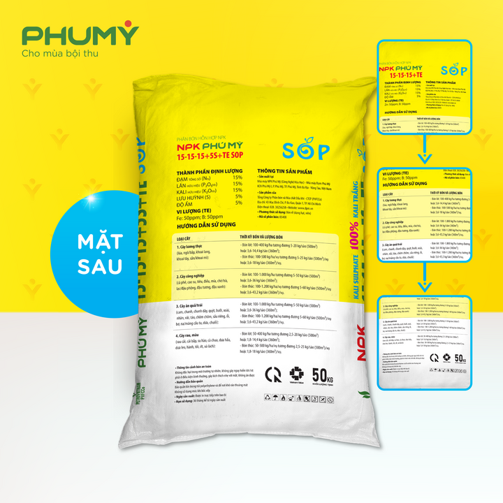 Với những ưu điểm vượt trội về công nghệ sản xuất, nguyên liệu chất lượng cao và hiệu quả sử dụng, NPK Phú Mỹ 15-15-15+5S+TE SOP sẽ là sự lựa chọn đáng tin cậy giúp người nông dân nâng cao năng suất và chất lượng sản phẩm, hướng đến những mùa vụ thành công và phát triển bền vững.