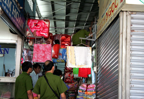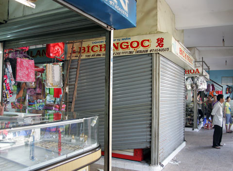 Sau khi hay tin tiệm vàng Bích Ngọc bị trộm, các tiểu thương và người dân ở chợ Bình Tiên nhốn nháo. Ảnh:An Nhơn.