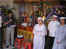 Bà Trần Thúy Liễu đứng giữa hai con gái trong đám tang chồng.