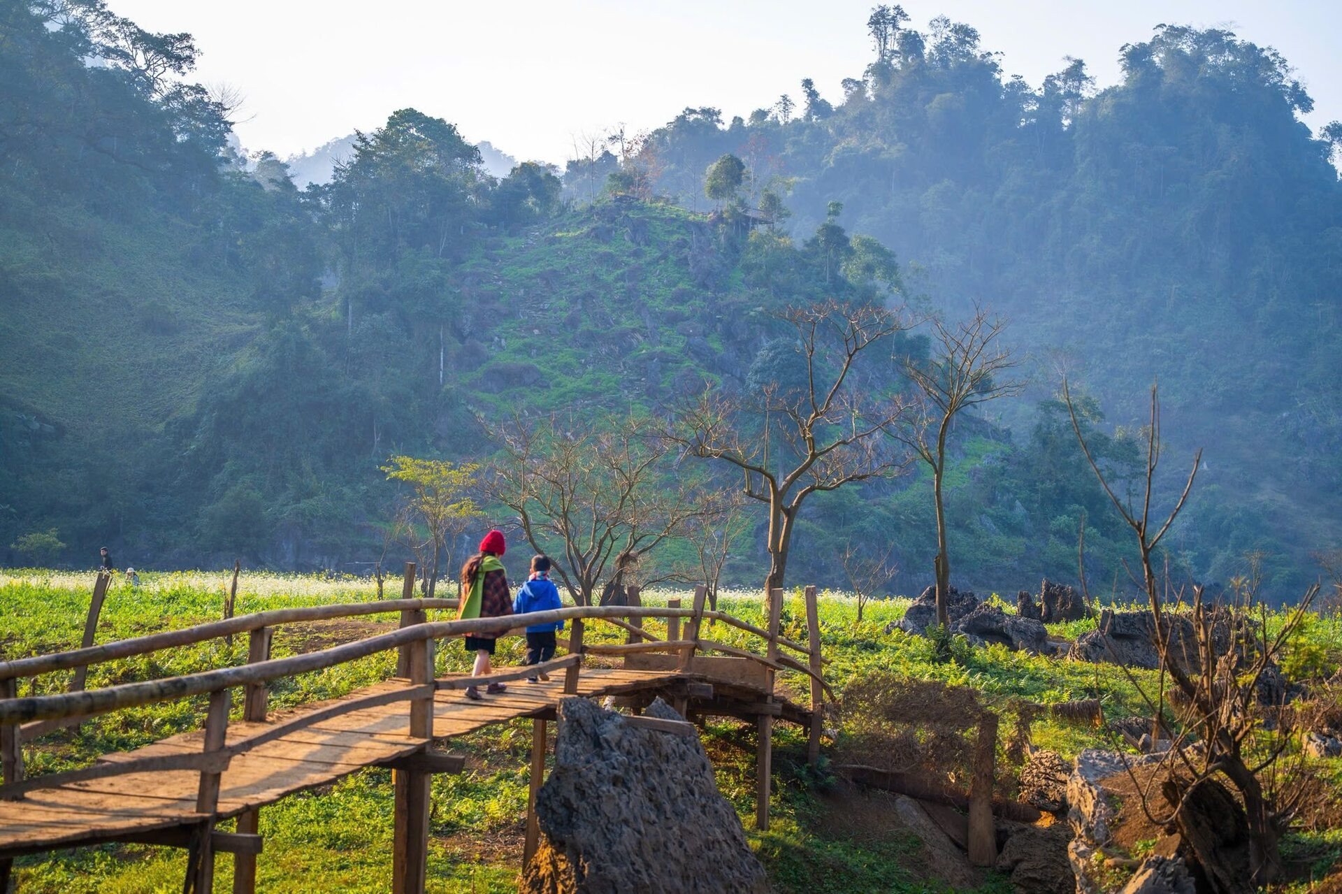 Điểm nhấn khó bỏ qua là hồ Tà Phình. Sau mùa mưa, nước dâng cao tạo nên một hệ sinh thái mặt nước cực kỳ nên thơ, được ví như Tràng An thu nhỏ. Còn nếu đi vào đầu năm, khoảng tháng 1, cả bản lại phủ kín sắc trắng hoa mận xen lẫn sắc vàng hoa cải.