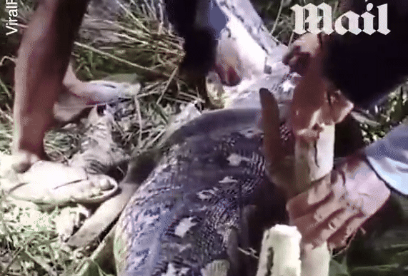 Người dân mổ bụng con trăn khổng lồ thì phát hiện thi thể của người phụ nữ xấu số. Ảnh: Dailymail
