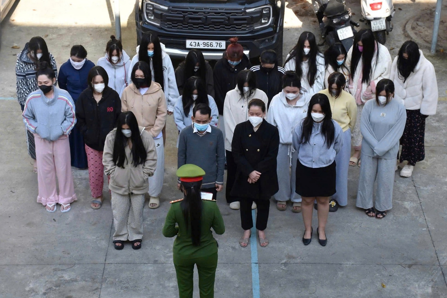 Theo đó, rạng sáng 9/1, Phòng Cảnh sát hình sự Công an TP Đà Nẵng đã chủ trì, phối hợp với Công an phường Ngũ Hành Sơn và Công an phường Thanh Khê đồng loạt kiểm tra, triệt xoá 2 tụ điểm mại dâm trá hình tại cơ sở Spa và Massage Hoa Sứ (tầng 7, khách sạn Mường Thanh, số 270 Võ Nguyên Giáp, phường Ngũ Hành Sơn, TP Đà Nẵng) và khu kinh doanh dịch vụ spa, massage tại các tầng 5, 6, 7 khách sạn Samdi (số 331–339 Nguyễn Văn Linh, phường Thanh Khê, TP Đà Nẵng), đưa hơn 40 đối tượng có liên quan về trụ sở để đấu tranh, làm rõ.