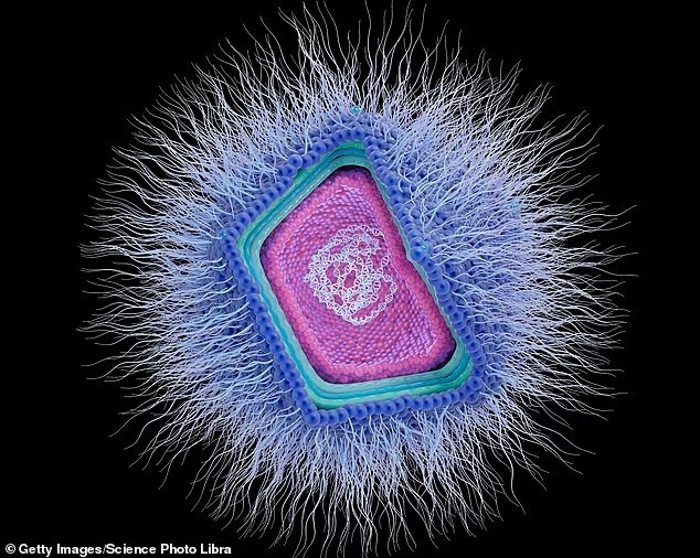 Virus khổng lồ là một nhóm đa dạng và phức tạp, có khả năng lây nhiễm từ sinh vật nhân thực đơn bào đến động vật. Trong hình: Minh họa một virus DNA khổng lồ thuộc nhóm nucleocytoplasmic.