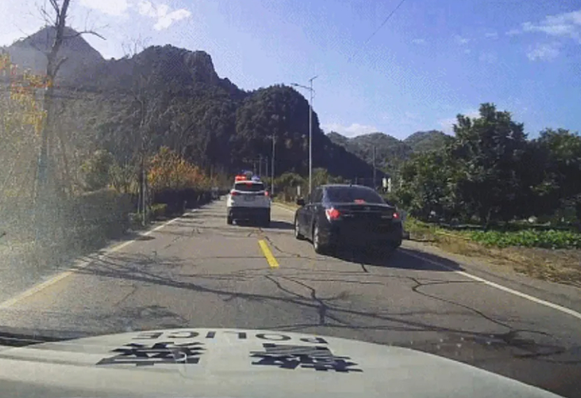 Khoảng 12h35, tại thị trấn Hạc Thịnh thuộc huyện Vĩnh Gia, lực lượng chứng năng cuối cùng cũng áp sát được chiếc xe nghi vấn. Hai xe cảnh sát phối hợp nhịp nhàng, một xe vượt lên chặn đầu, xe còn lại áp sát phía sau, khóa chặt phương tiện vào lề đường.