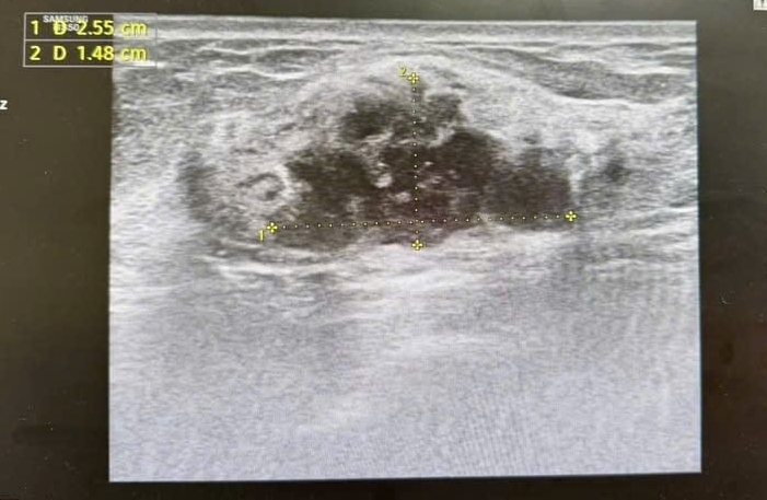 Hình ảnh khối u được phân loại BIRADS 4 trên siêu âm và chụp X-quang tuyến vú.