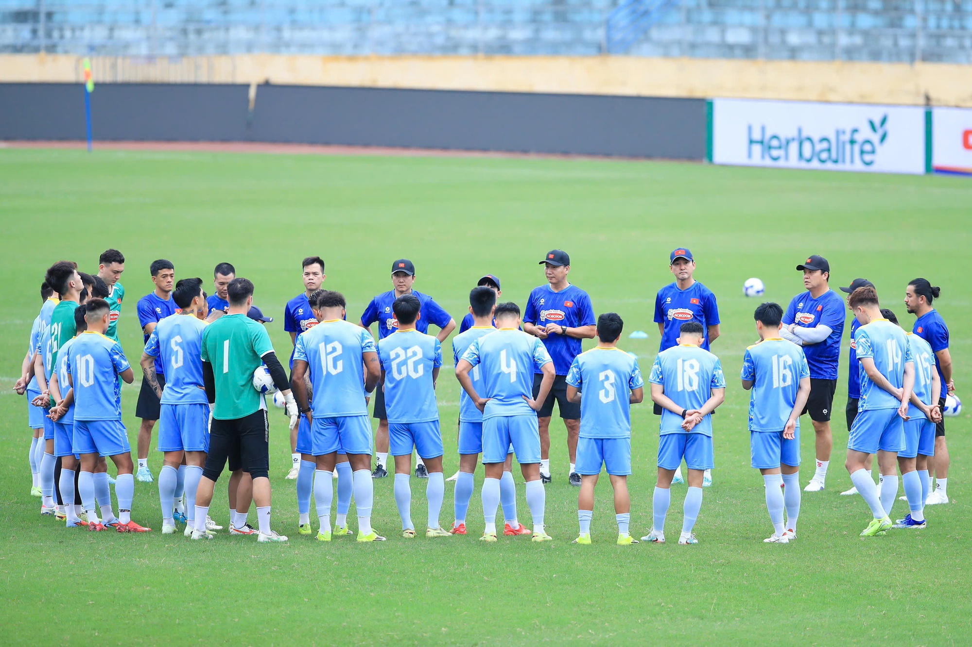 Trong buổi tập này, HLV Kim Sang Sik sở hữu lực lượng tối ưu với đầy đủ 23 cầu thủ đã được triệu tập