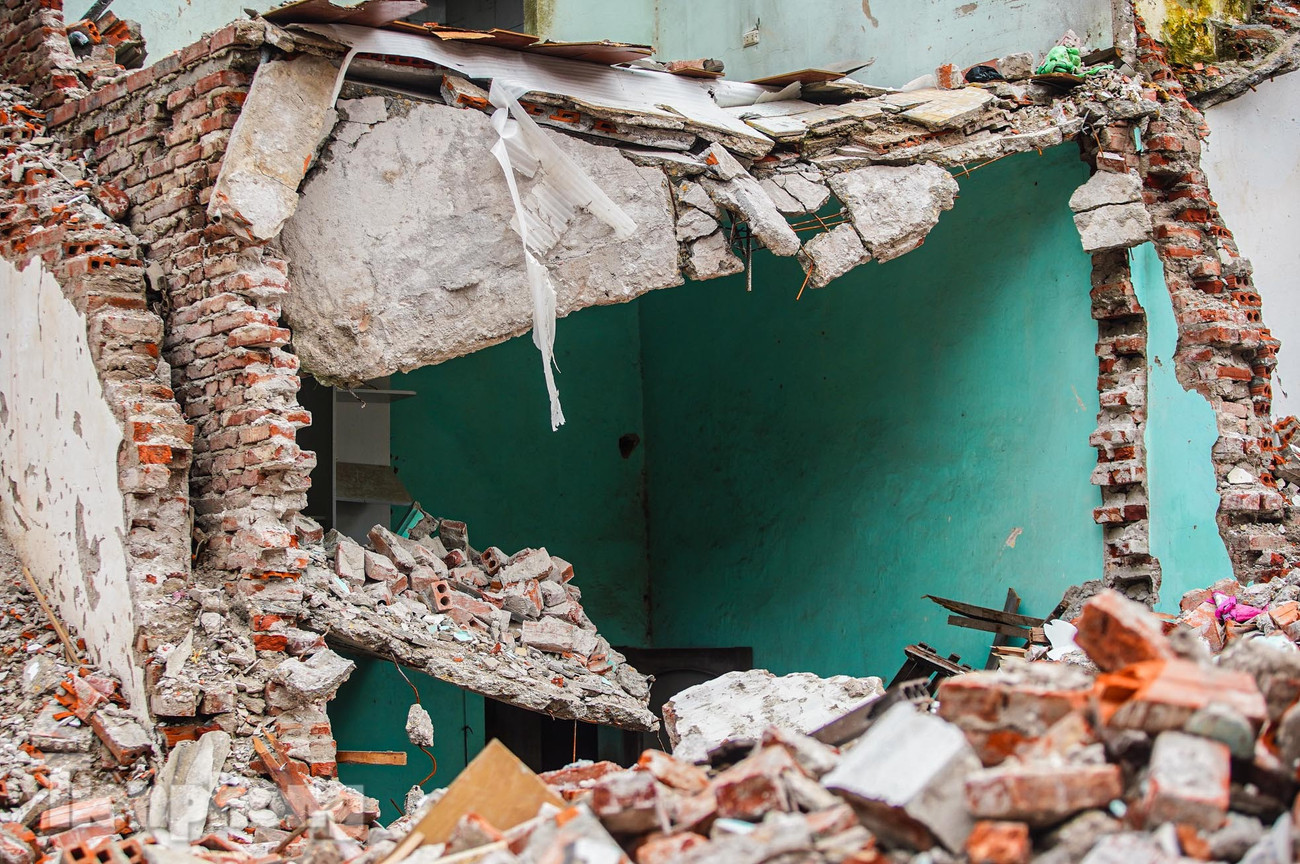 Công trình sau khi phá dỡ ngổn ngang phế liệu.