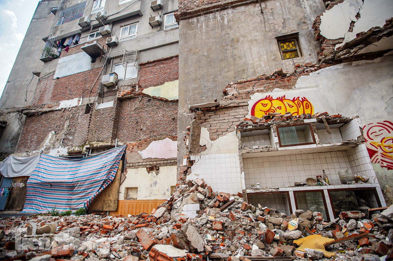 "Từ ngày bắt đầu giải phóng là tuyến đường bụi mù mịt, đập xong thì để nguyên gạch đá ở đấy, chưa kể rác thải đổ trộm vào khu đất để lâu ngày bốc mùi hôi thối, đặc biệt những hôm mưa", ông Dũng (phường Đống Đa) chia sẻ.