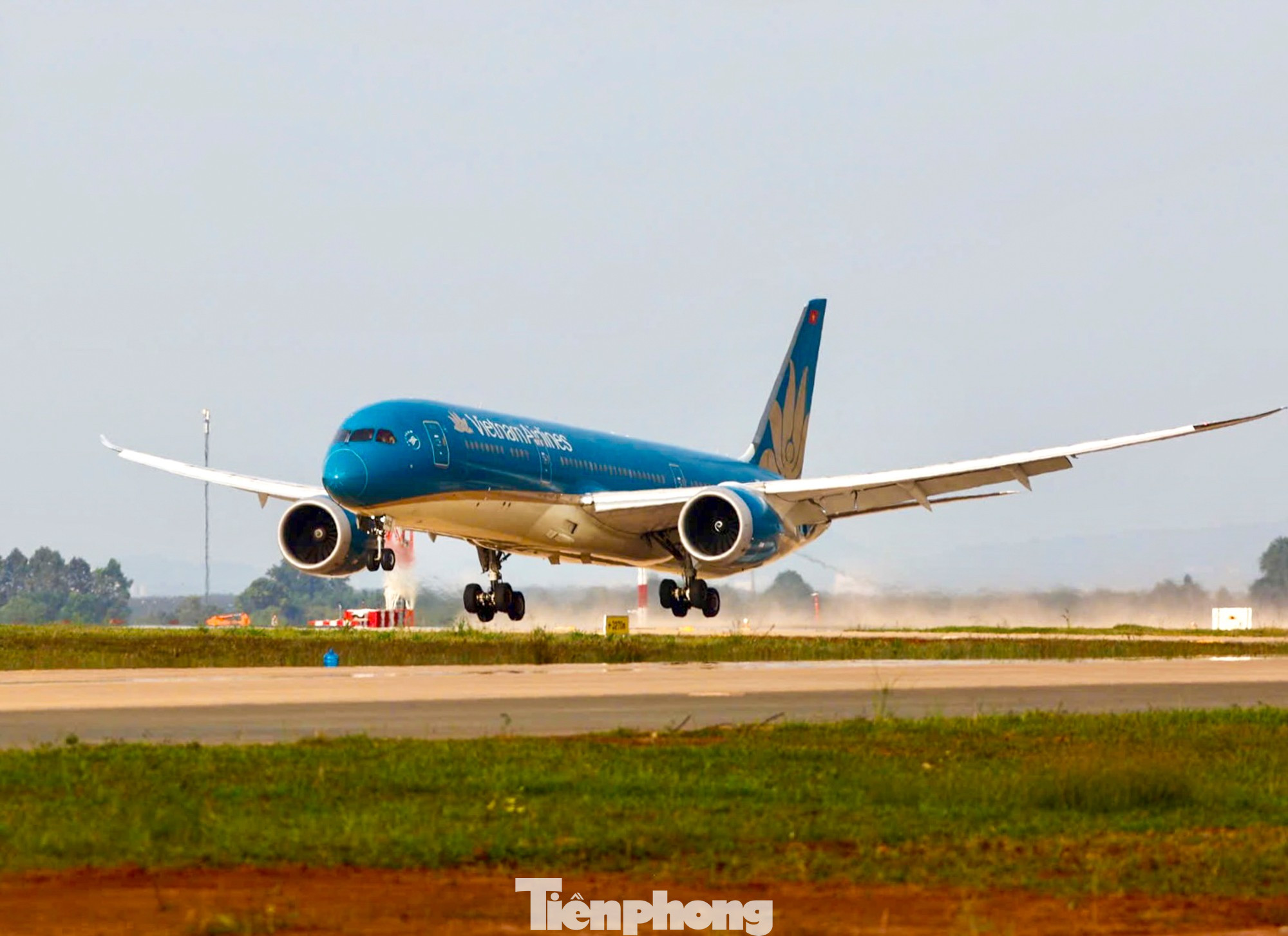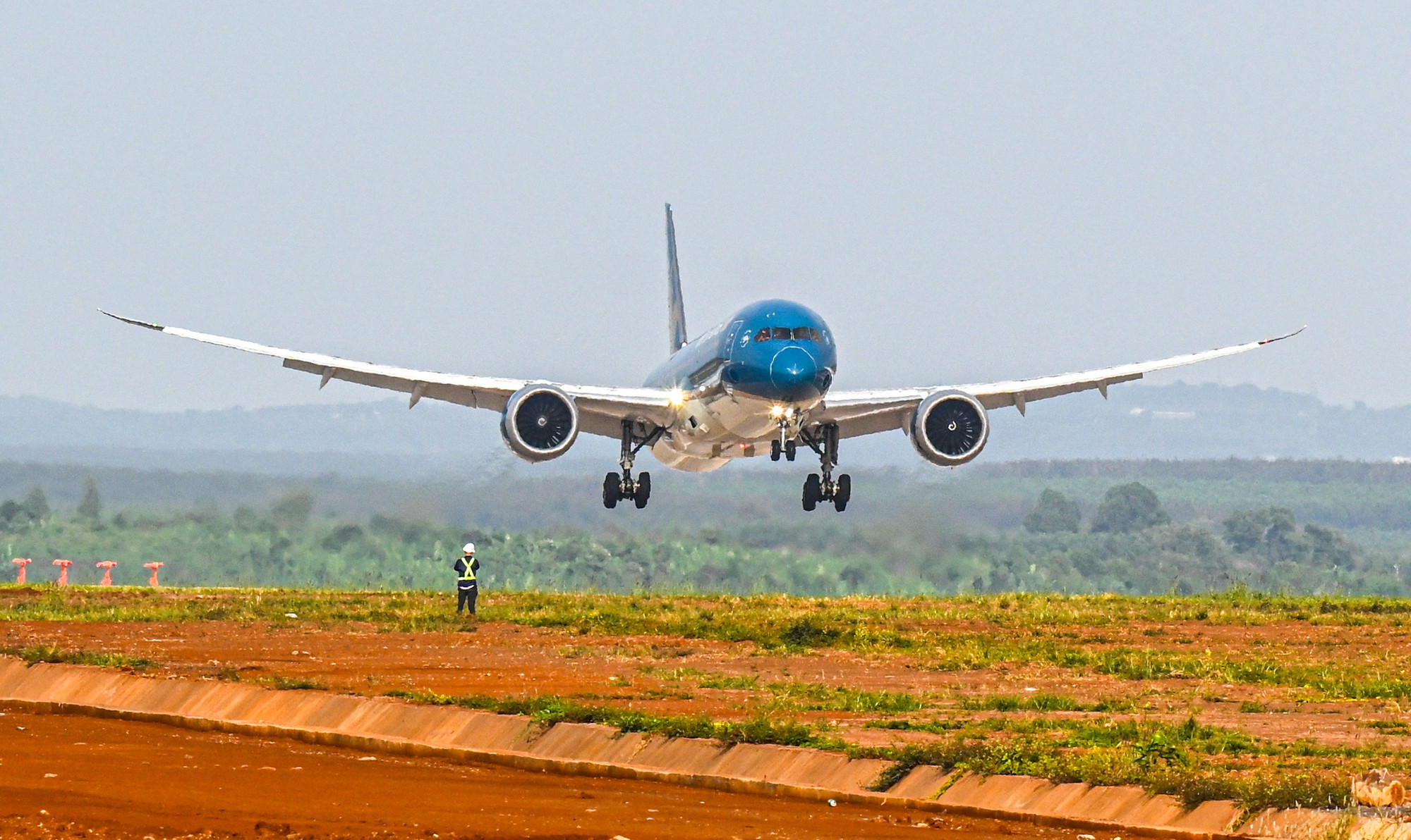 Boeing 787 có sải cánh lớn và khả năng tạo nhiễu động mạnh hơn, cho phép đánh giá sát thực tế các yếu tố kỹ thuật, địa hình và điều kiện khí tượng sân bay mới. Ảnh: Duy Anh.