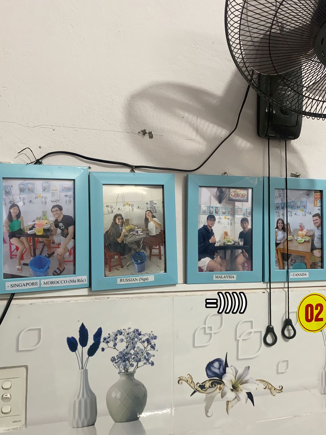 Sau câu trả lời “đại đại” của mình, hai chàng trai cũng không ngờ rằng hôm sau khi quay lại quán ăn, hình ảnh của họ lại được treo trên tường. Đáng chú ý hơn khi phóng to bức ảnh, zoom cận vào dòng chữ phía dưới, nhiều người còn nhận ra chủ quán đã để tên đất nước mà hai anh chàng này trả lời là Malaysia. Bên cạnh đó cũng là loạt những hình ảnh của các vị khách nước ngoài khác đã từng ghé quán ăn cũng được chủ quán cẩn thận treo lên tường.