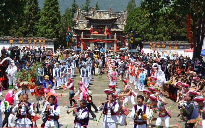 Lễ hội Nhiễu Tam Linh là một trong những lễ hội lớn nhất trong năm của người dân tộc Bạch ở Đại Lý, Vân Nam, Trung Quốc. (Ảnh: Baidu)