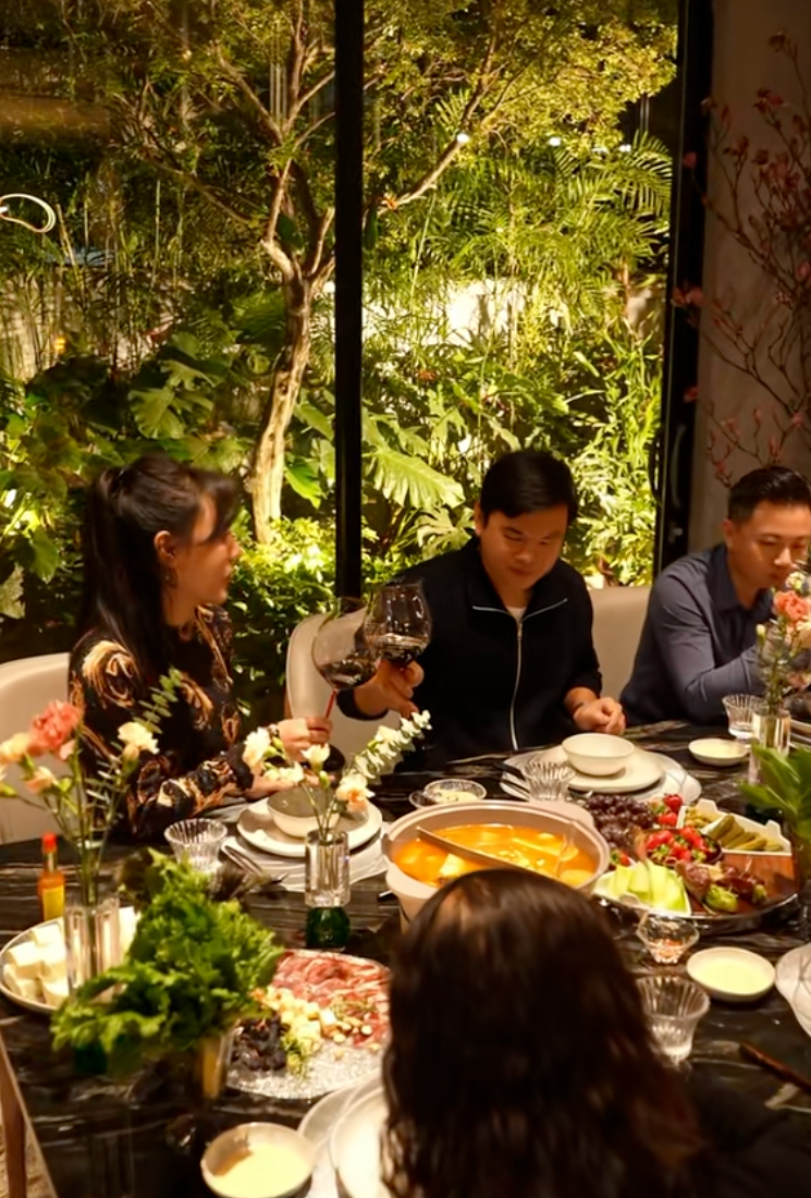 Phú bà Ngô Thùy Linh có sở thích "bày vẽ", thích nấu nướng, thích bày biện, mỗi tối gia đình lại như lạc vào một đất nước khác, ví dụ như ăn đồ Trung Quốc là phải hóa thân thành "Hoàn Châu Cách Cách", ăn đồ Hàn là có ngay bộ Hanbok cầu kỳ, đồ ăn Pháp là phải ăn diện đúng chất quý tộc Châu Âu... Thế nên không chỉ gia đình được hưởng những trận cười "no bụng" mà dân tình cũng hào hứng khám phá ẩm thực thế giới cùng cả nhà phú bà Ngô Thùy Linh.