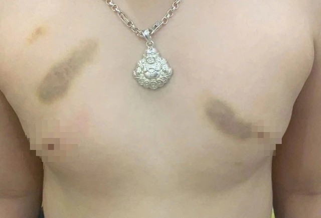 Bà T.T phát hiện trên ngực con trai có 2 vết bầm nên tố nhà trường bạo hành ẢNH: NVCC