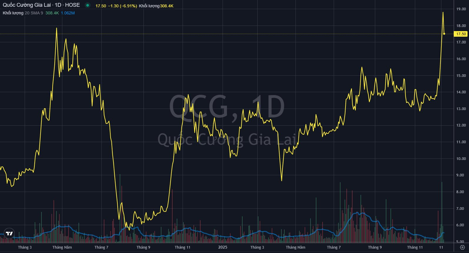 Trước đó, mã QCG vừa có chuỗi 4 phiên tăng trần liên tiếp bất chấp thị trường chung điều chỉnh. Thị giá 18.800 đồng/cp, đỉnh cao nhất gần 4 năm kể từ vùng kỷ lục hồi cuối tháng 2021 tới đầu năm 2022.