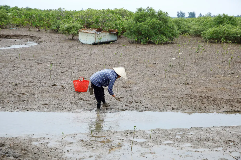 Bà Nguyễn Thị Truyền săn hàu bên rừng sú vẹt
