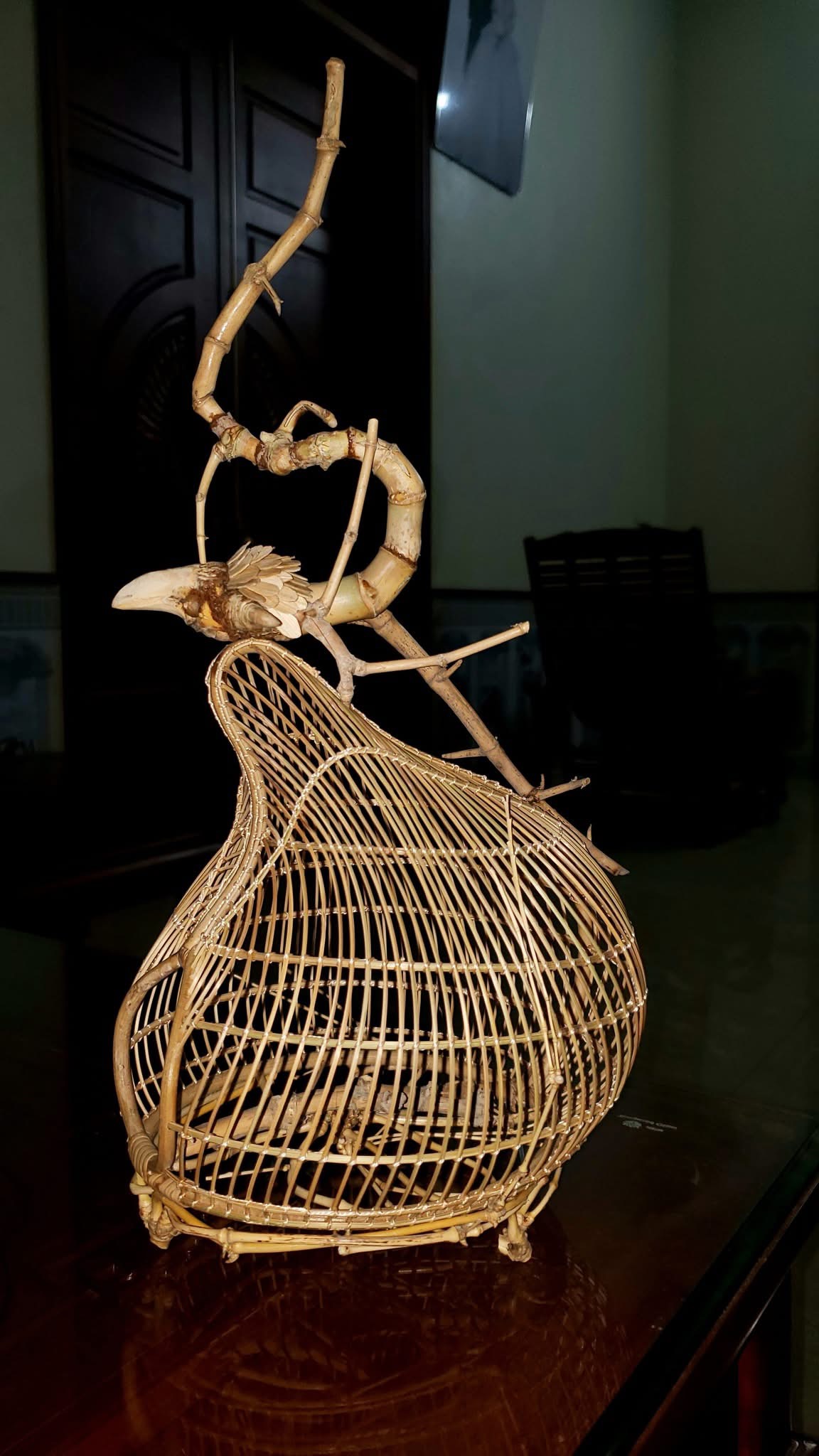 Lồng chim từ nan tre cũng được chế tác tỉ mỉ, bắt mắt cỡ này.