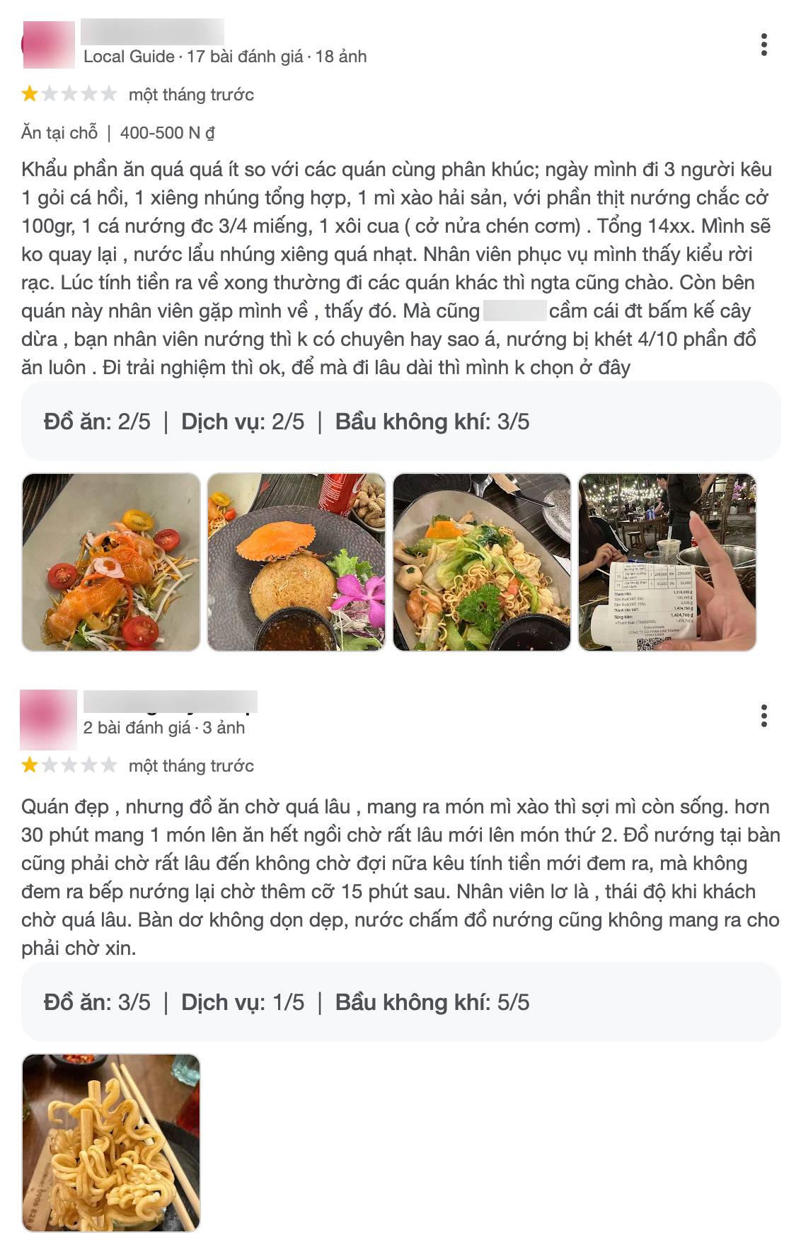 Từ những phản hồi trên, có thể thấy các vấn đề được thực khách nhắc đến nhiều nhất xoay quanh khẩu phần món ăn, tốc độ lên món, chất lượng phục vụ và mức giá so với trải nghiệm.