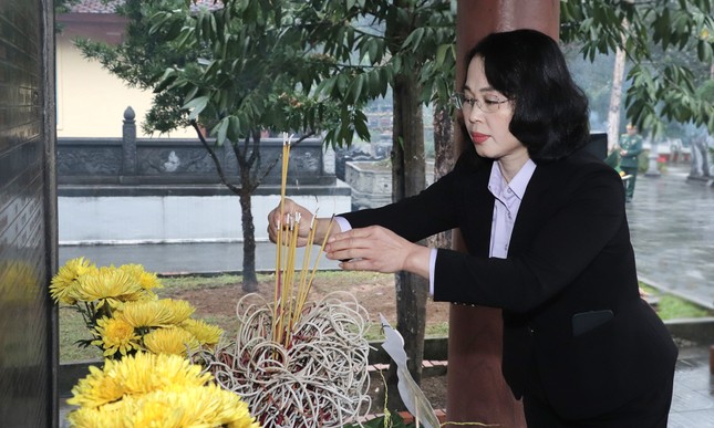 Bà Trịnh Thị Minh dâng hương tại Khu di tích lịch sử quốc gia Pò Hèn.