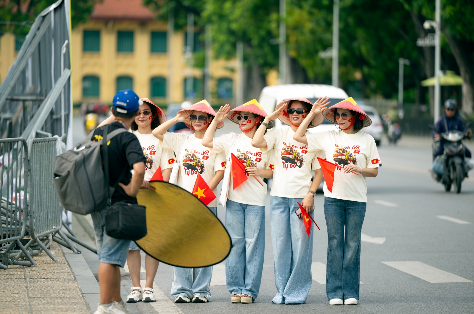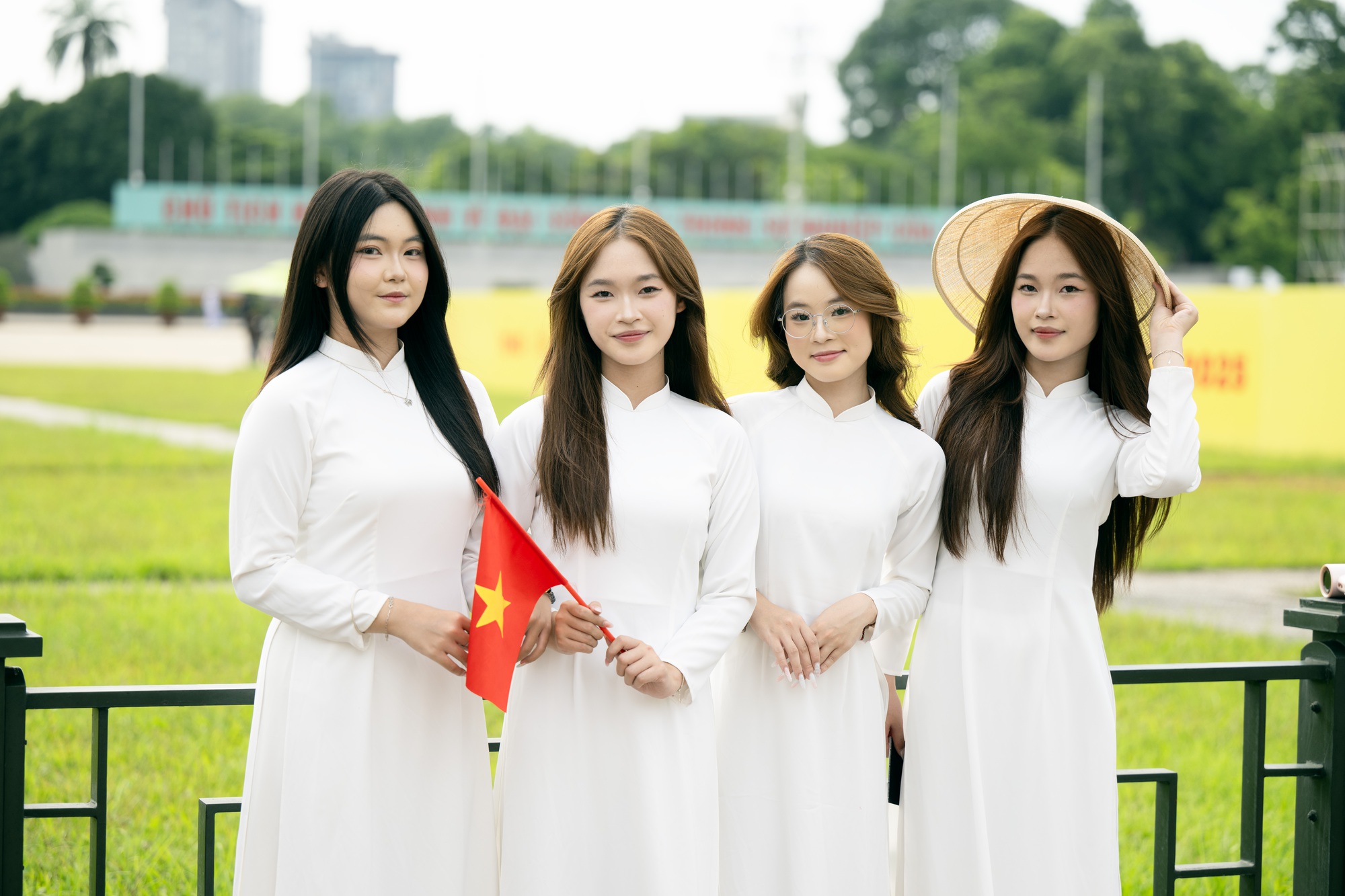 Những ngày này, các tuyến đường hướng về Quảng trường Ba Đình tấp nập người và phương tiện xếp hàng tham quan, chụp ảnh. Nhiều người chọn trang phục truyền thống, mang theo cờ Tổ quốc để lưu giữ kỷ niệm 80 năm Quốc khánh nước Cộng hòa xã hội chủ nghĩa Việt Nam.