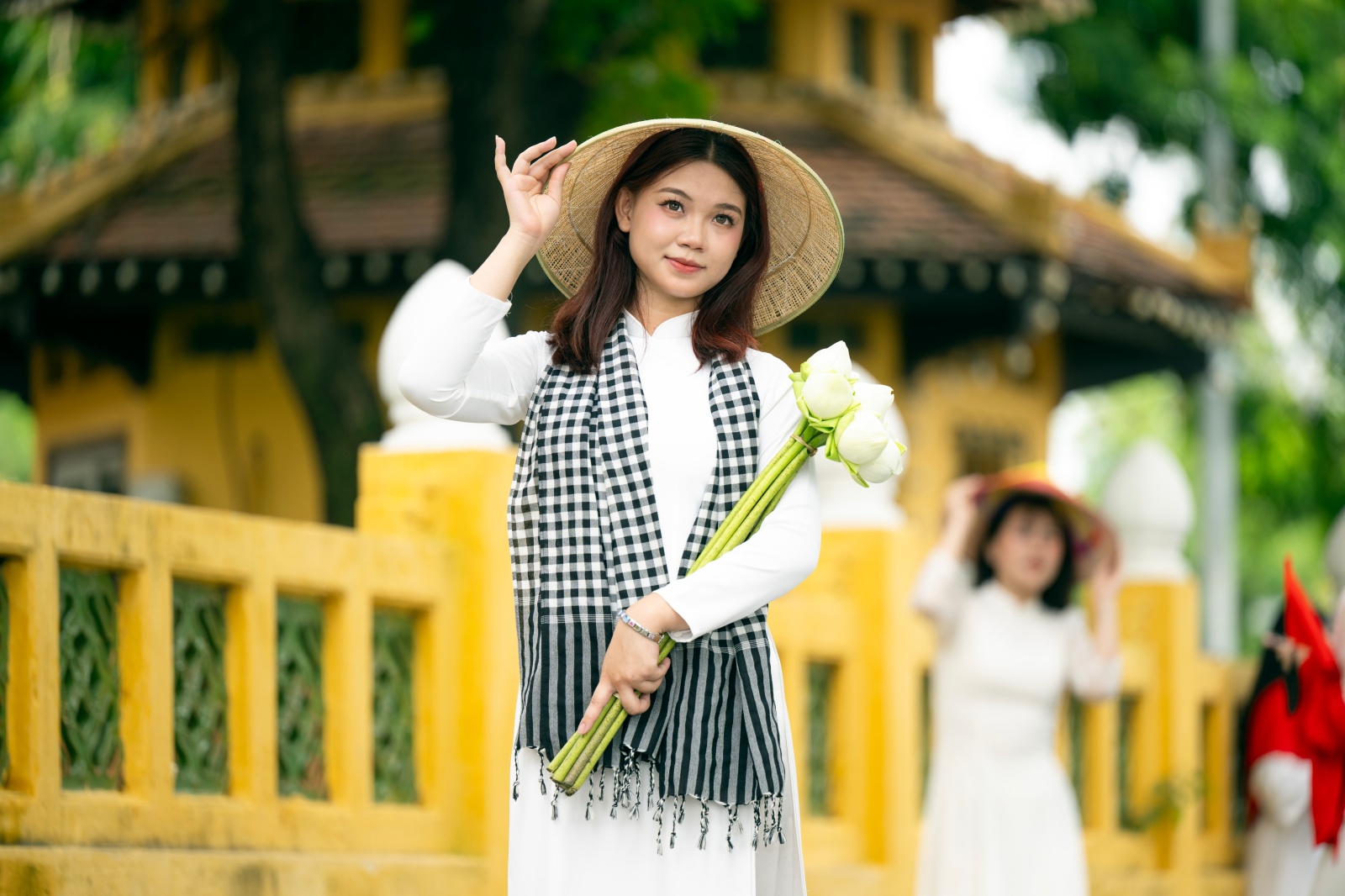 Cờ, hoa, nón lá là những phụ kiện không thể thiếu trong những bức ảnh mừng ngày đại lễ.