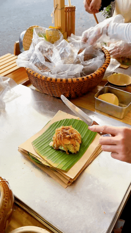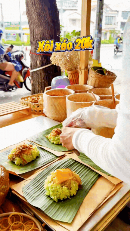 Thực khách sẽ không khỏi ấn tượng trước sự đa dạng của phần topping trong mỗi gói xôi xéo từ hành phi vàng ruộm giòn tan, nước xốt thịt đậm đà, xá bấu mằn mặn, lạp xưởng béo ngọt, sườn chay chiên giòn cho tới chà bông bông tơi, chả lụa thơm dẻo. Điều đặc biệt là thay vì đựng trong túi nilon quen thuộc, xôi ở đây được gói trong lớp giấy draft, kẹp thêm một lớp lá chuối tiêu xanh mướt, vừa giữ ấm vừa làm món ăn thêm phần mộc mạc, lành và sạch. Hình ảnh trên trang cá nhân của cô chủ quán cho thấy tất cả đều được chuẩn bị gọn gàng, sạch sẽ, đặc biệt là phần gói xôi vuông vắn, đẹp mắt khiến người xem chỉ muốn thưởng thức ngay.