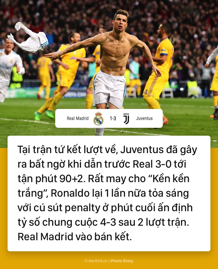 Ngoại trừ vòng bán kết, Ronaldo tỏa sáng rực rỡ trên con đường đưa Real Madrid đến trận chung kết Champions League năm thứ ba liên tiếp.
