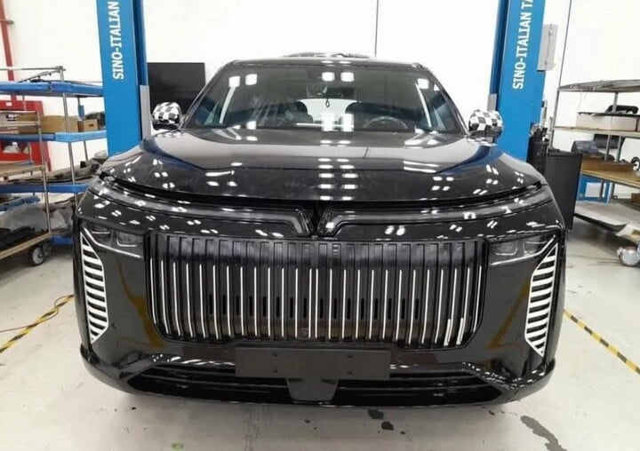 Đáng chú ý, mặt trước của xe có lưới tản nhiệt nan dọc cỡ lớn, tạo liên tưởng tới các mẫu xe sang châu Âu đến từ Mercedes-Maybach hay Rolls-Royce. Logo ở giữa mũi xe được làm nổi và sơn vàng tạo điểm nhấn.
