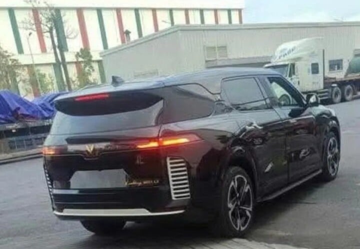 Đuôi xe phía sau cũng được trang bị khe gió thiết kế giống mặt trước. Các chi tiết còn lại như đèn hậu LED kéo dài, bộ mâm, thiết kế kính hông gần như không thay đổi so với VinFast VF 9, ngoại trừ cản sau được tinh chỉnh và logo chữ V giữa cửa cốp cùng dòng chữ tên xe được sơn vàng kim.