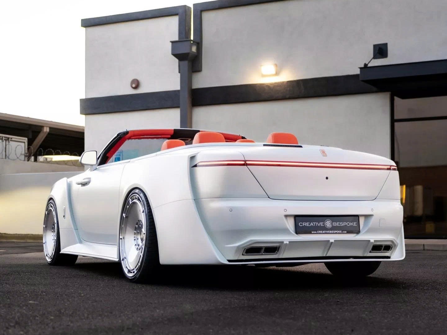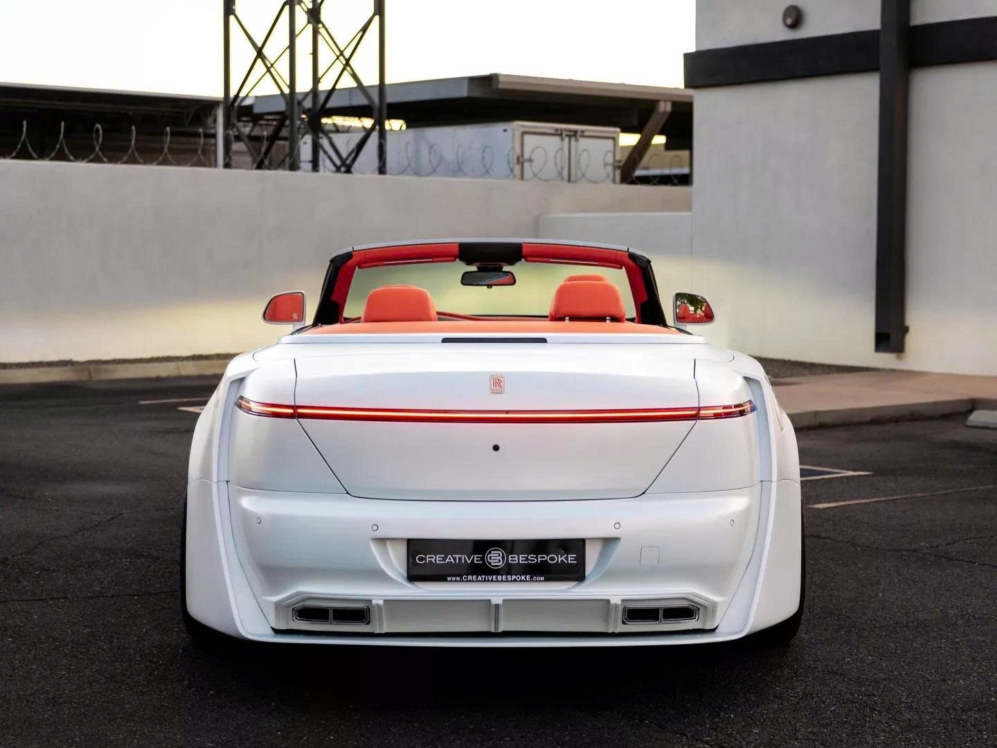 Khi bạn nghĩ rằng gói độ không thể trở nên kỳ lạ hơn, hãng độ Dubai này đã loại bỏ hoàn toàn phần đuôi xe nguyên bản của Dawn. Thay vào đó là đèn hậu siêu mỏng, một thanh đèn LED liền mạch, cản dưới được tạo hình lại với bộ khuếch tán mạnh mẽ, cùng một cặp ống xả độ. Toàn bộ thân xe được phủ lớp màu trắng mờ. Hiện tại, chưa có xác nhận liệu đây là lớp sơn hay lớp dán decal.