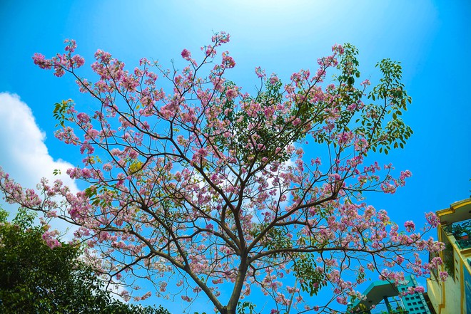 Tiết trời nắng nóng, nhưng hàng hoa kèn hồng rực rỡ khiến cho phố phường trở nên dịu dàng lạ thường