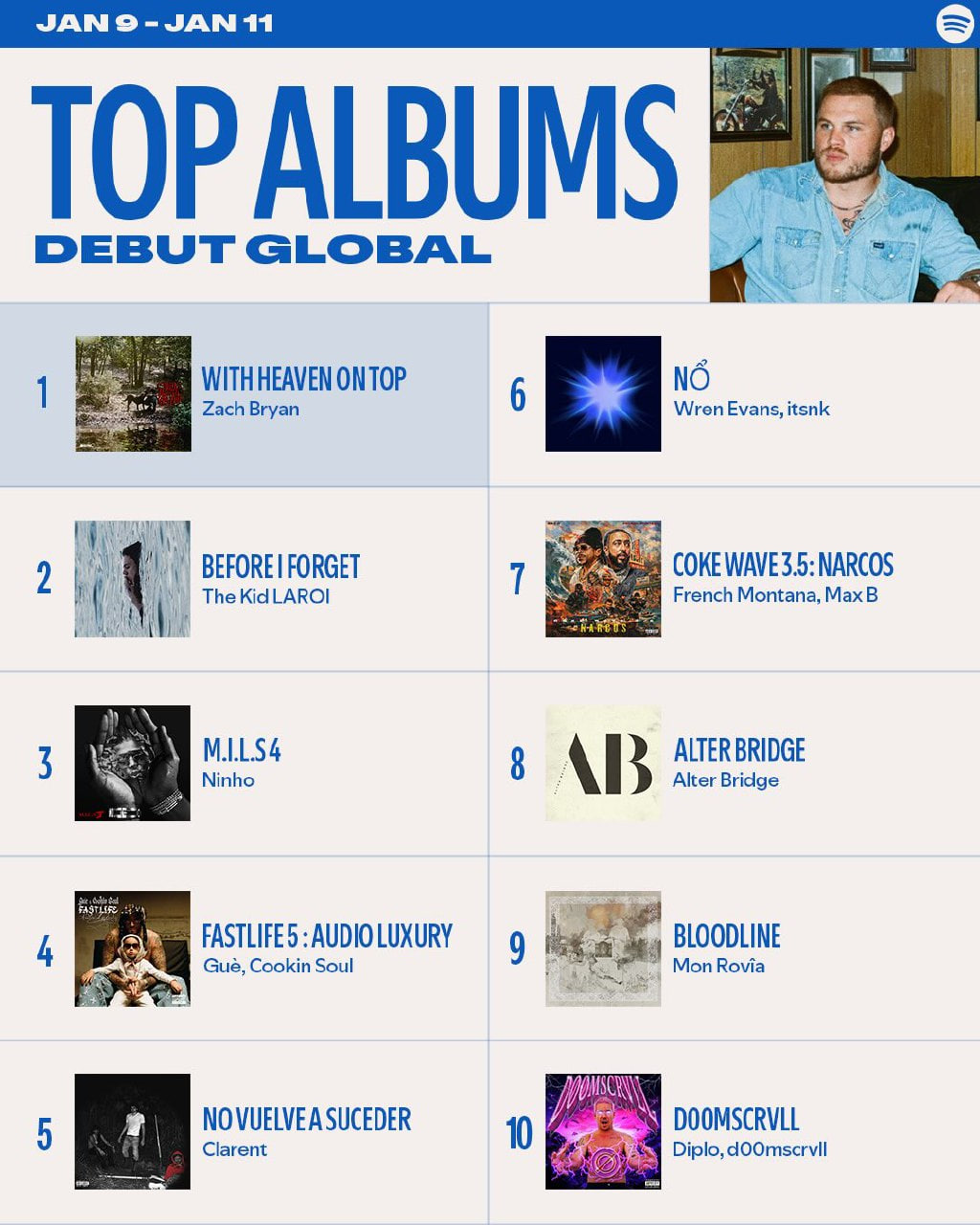Cột mốc này giúp HIEUTHUHAI trở thành nghệ sĩ Việt Nam thứ hai lọt vào danh sách Top Albums Debut Global của Spotify. Trước đó, kỷ lục đầu tiên thuộc về Wren Evans. Nam ca sĩ từng gây tiếng vang lớn khi album Nổ góp mặt ở vị trí debut #6 Top Albums Debut Global. Ở thời điểm đó, Nổ cũng là album Việt duy nhất góp mặt trong top 10 tuần, xuất hiện bên cạnh loạt nghệ sĩ nổi tiếng quốc tế như Zach Bryan, The Kid LAROI, Ninho, French Montana hay Diplo.