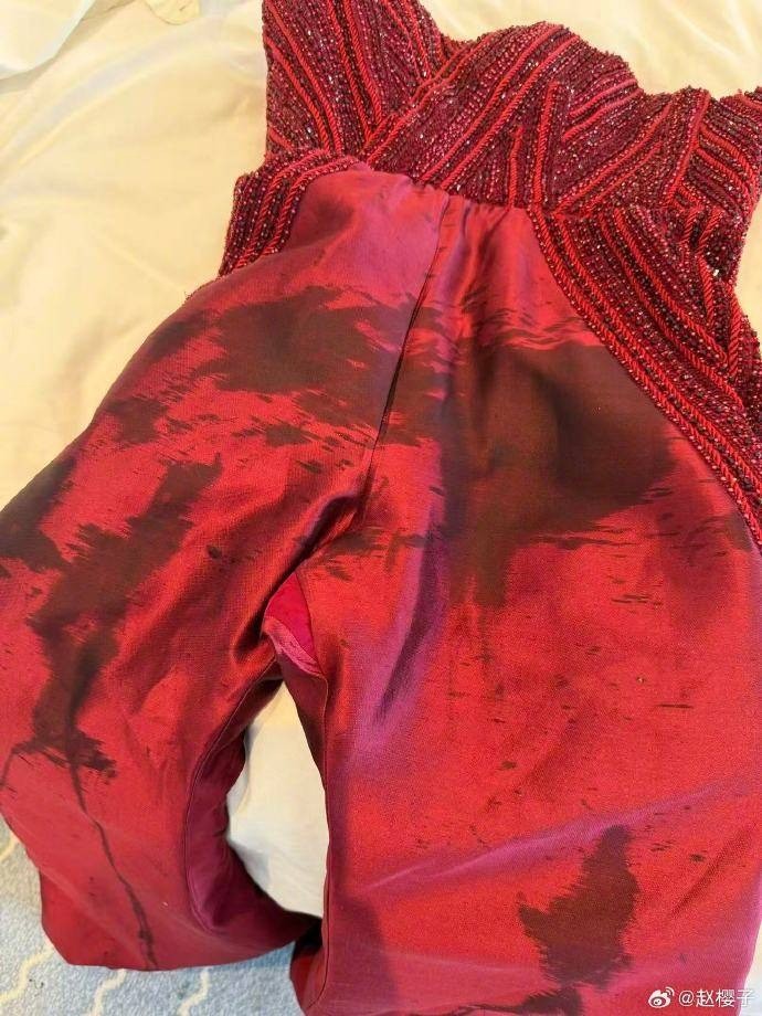 Triệu Anh Tử bị cho rằng cố tình gây chú ý nhờ chiếc váy bị đổ cà phê.