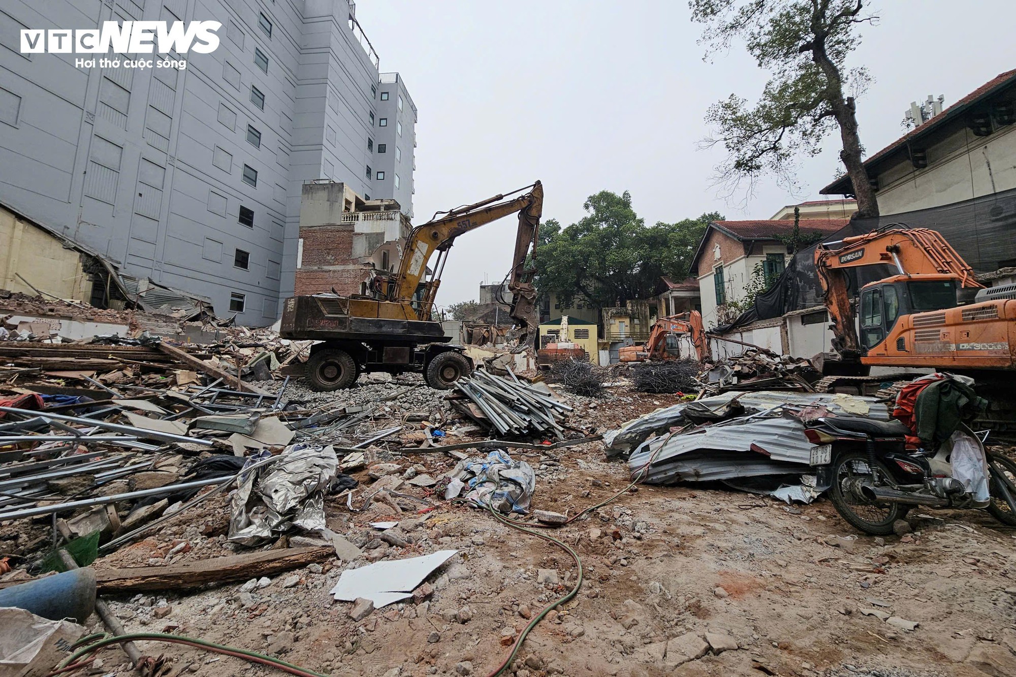 Sau phá dỡ, các máy móc cơ giới được huy động liên tục để san gạt, thu dọn, sớm bàn giao mặt bằng sạch cho đơn vị thi công.