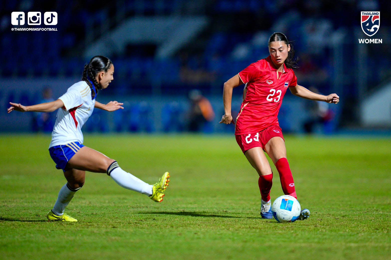 Phút 53, Thái Lan vươn lên dẫn trước. Từ tình huống phối hợp trung lộ, hậu vệ Long Moriah phá bóng hụt, tạo điều kiện cho Jiraporn Mongkoldee băng xuống dứt điểm tinh tế tung lưới Philippines.