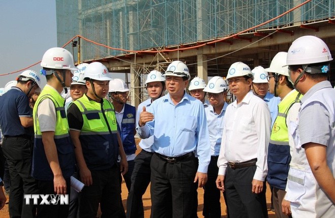 Bộ trưởng Bộ Xây dựng kiểm tra thực địa tại sân bay Long Thành, ngày 10/1. Ảnh: TTXVN