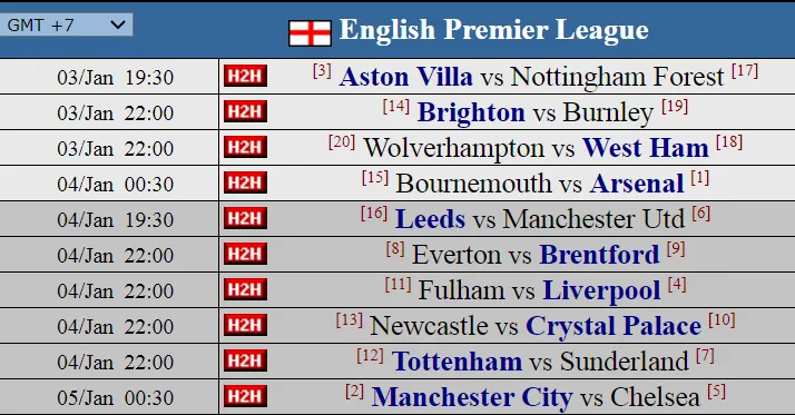 Bournemouth vs Arsenal | 00:30 VN (Chủ nhật): Arsenal đang đứng trước ngưỡng cửa lịch sử. Đây là lần thứ 7 họ đứng đầu bảng vào dịp năm mới, ngang bằng với kỷ lục của Liverpool và Man Utd. Trận thắng 4-1 trước Villa là một lời khẳng định: Arsenal năm nay không còn "dễ vỡ" như 3 mùa trước. Dù Arsenal ( 61.3% ) rất mạnh, nhưng Bournemouth từng hạ gục họ tại chính nơi này mùa trước. Antoine Semenyo—người sắp cập bến Man City—vẫn là ngòi nổ nguy hiểm nhất với những pha ném biên và đột phá. Giải pháp cho Arteta là phải phong tỏa đôi cánh của Bournemouth ngay từ vạch xuất phát, không cho đối thủ tạo ra những tình huống cố định hỗn loạn. Một chiến thắng sẽ giúp Pháo thủ bứt tốc khi Man City đang có dấu hiệu chững lại.