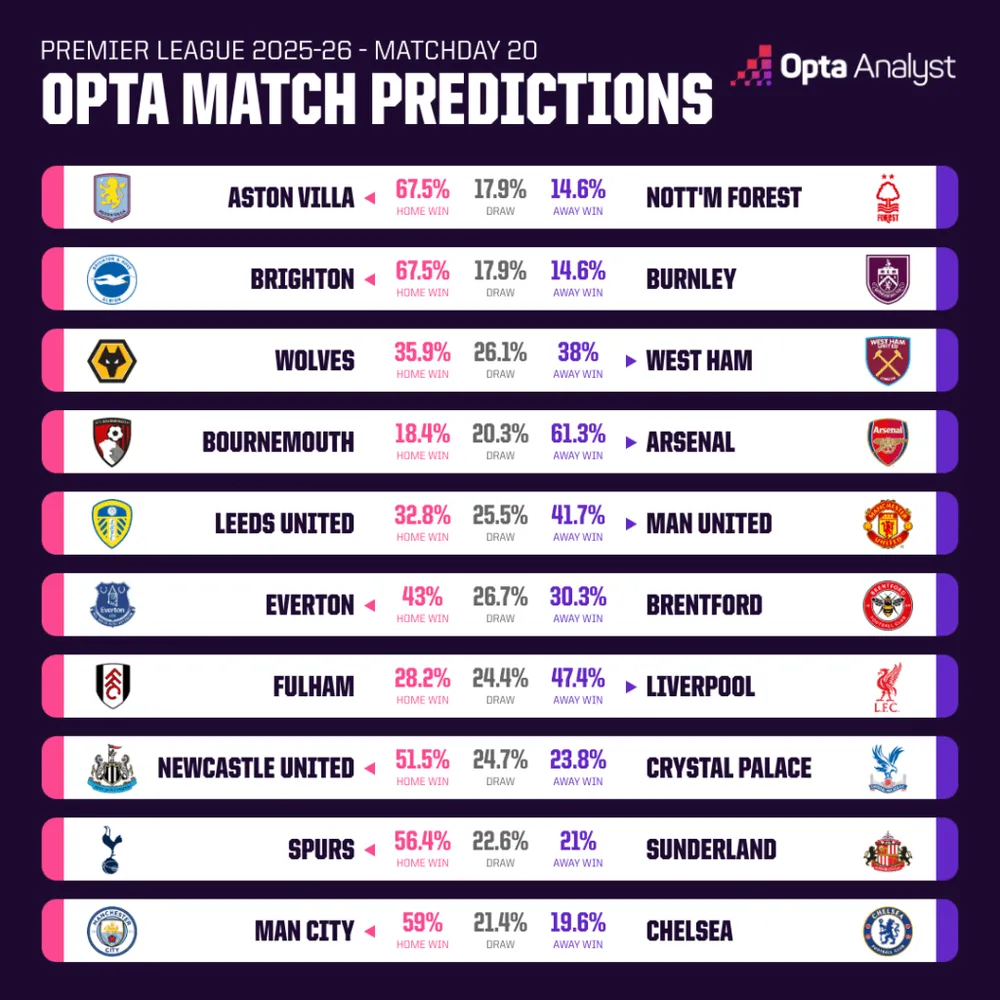 Aston Villa (67.5%) và Brighton (67.5%) : Hai pháo đài vững chắc nhất để đặt niềm tin tại sân nhà trước Nottingham Forest và Burnley.