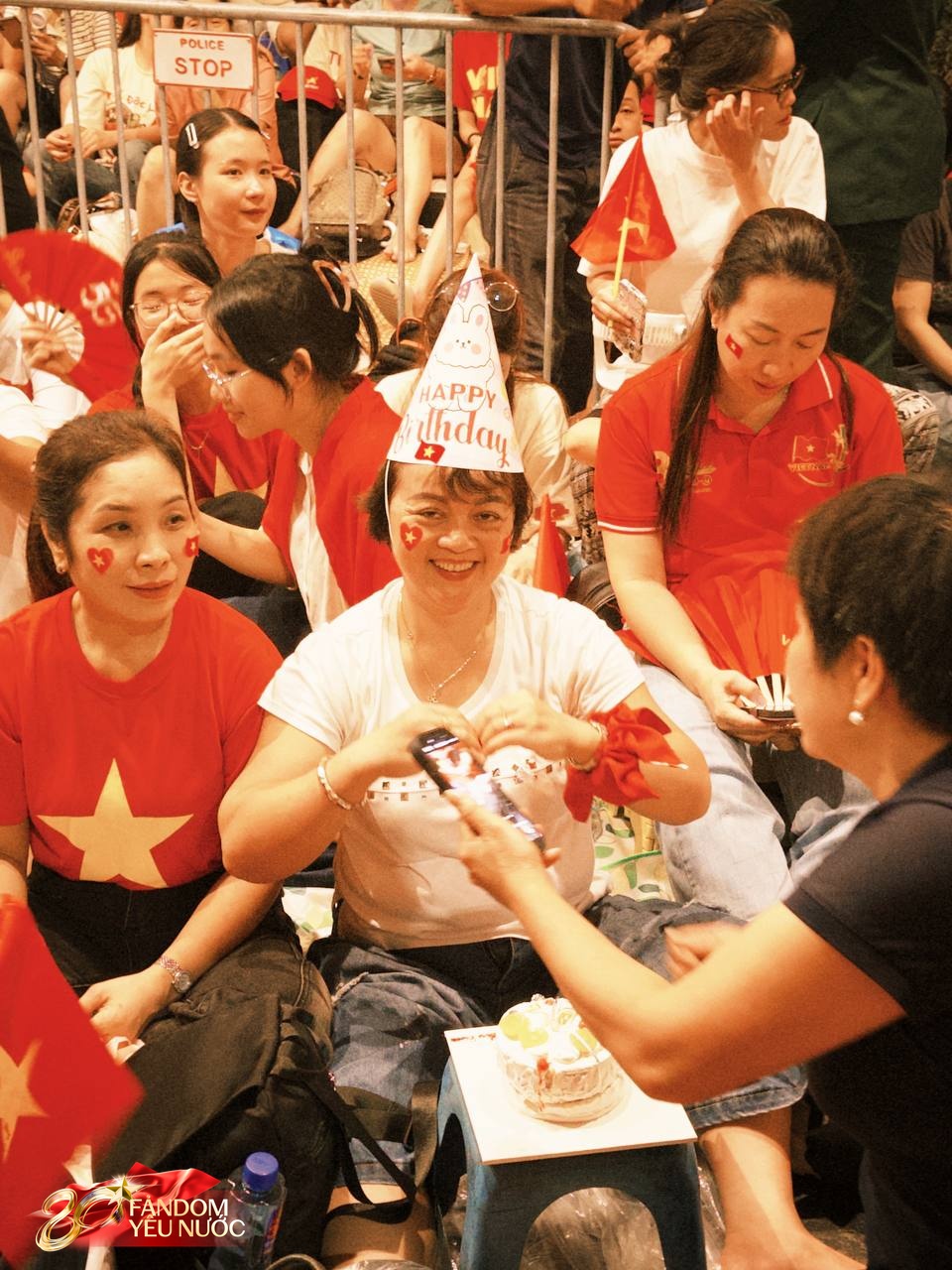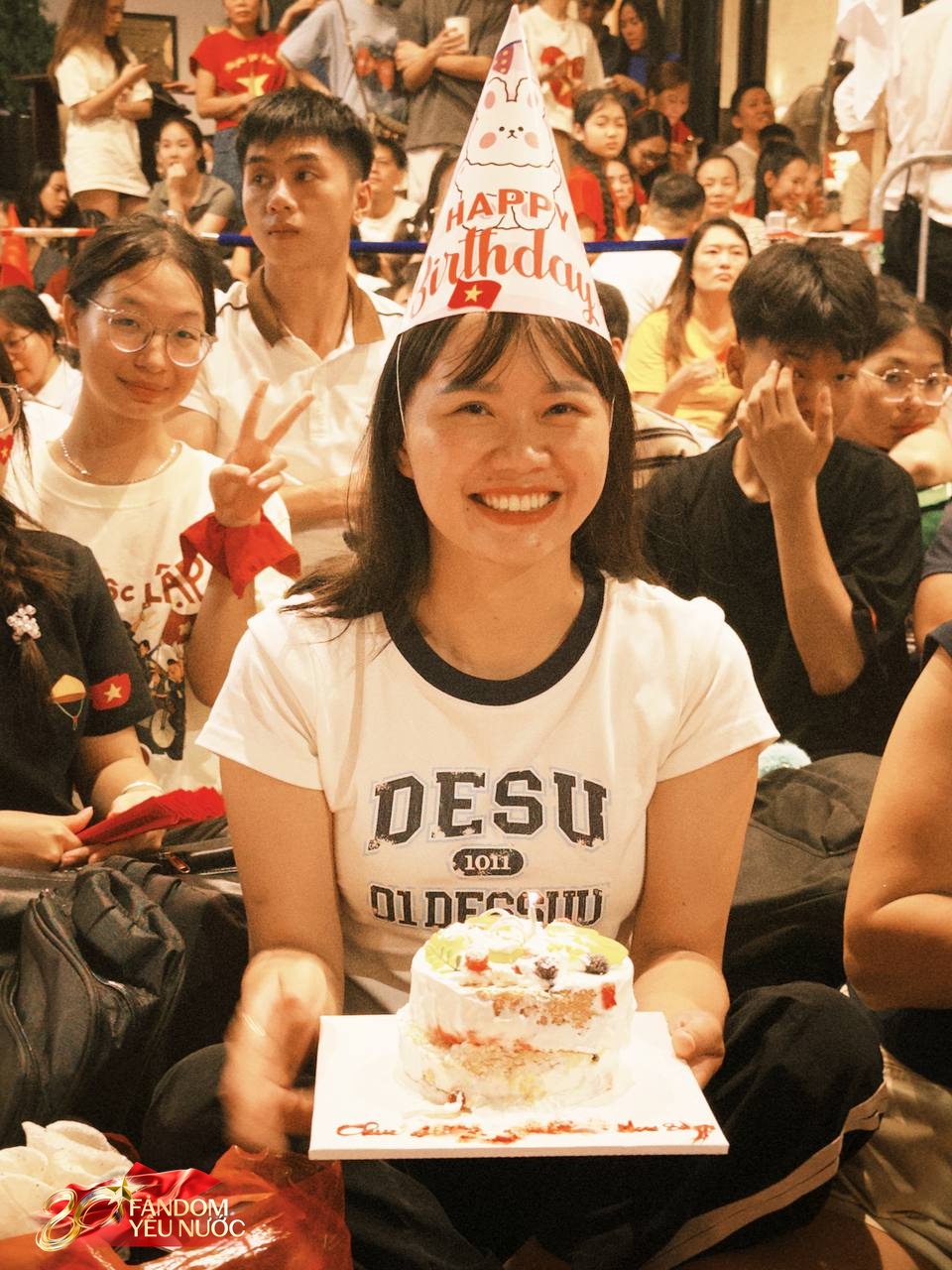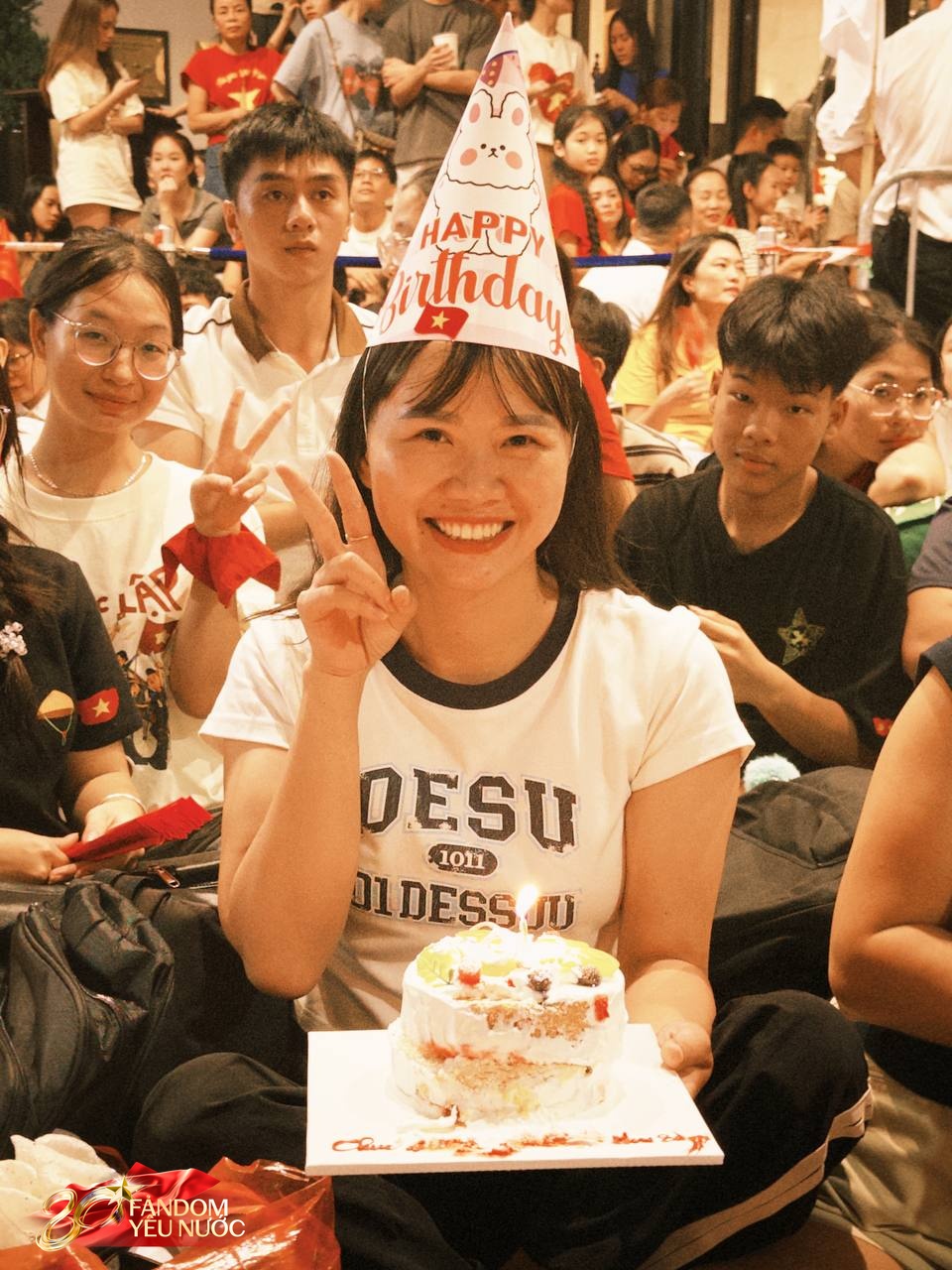 "Đúng 2/9 là sinh nhật của mình nhưng ngồi ở đây đông vui quá nên mình đã mua bánh kem đến đây, tổ chức sinh nhật luôn. Mình vui lắm, tự hào nữa và cũng muốn gửi lời cảm ơn tới tất cả mọi người ở đây vì đã hát, chúc mừng sinh nhật mình. Có thể là sĩ đến hết đời luôn", Hoa chia sẻ.