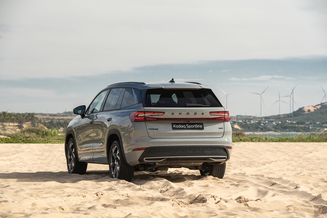 Thiết kế của Skoda Kodiaq 2025 vẫn có những nét tương đồng với thế hệ cũ, nhưng hiện đại hơn với nhiều đường nét bo tròn giúp hệ số cản gió chỉ 0,28 Cd. Cụm đèn chiếu sáng matrix LED nâng cấp lên 36 mô-đun. Đèn hậu LED vắt ngang đuôi là điểm mới. Riêng bản Sportline có ngoại thất thể thao hơn với ốp phía dưới sơn cùng màu xe và nhiều chi tiết sơn đen. Cả hai bản được trang bị mâm 19 inch nhưng khác biệt về tạo hình.