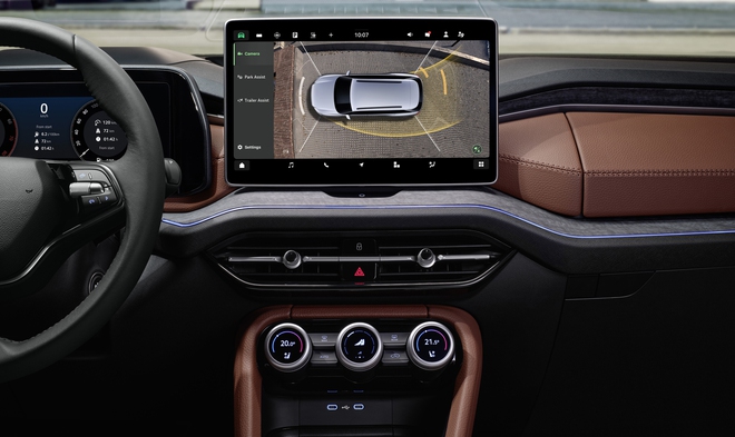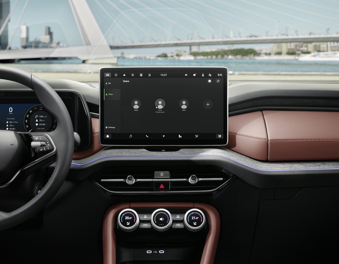 Một điểm tinh tế của mẫu xe này đó là ba núm xoay vật lý đặt ở bảng táp-lô có thể tùy chỉnh gần như toàn bộ các chức năng như hệ thống điều hòa, media, âm lượng, tiện ích ghế ngồi,... Người dùng chỉ cần ấn vào các núm xoay để chuyển giữa các menu mong muốn. Cách làm này giúp cabin xe trở nên gọn gàng hơn nhưng vẫn đảm bảo tính thực dụng.